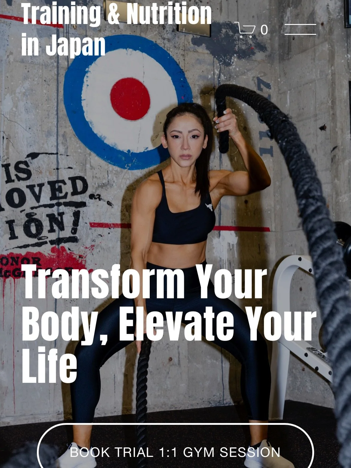 Book a 60-minute 1:1 trial session at the gym (¥5000) or a free 30-minute Zoom call for online coaching.